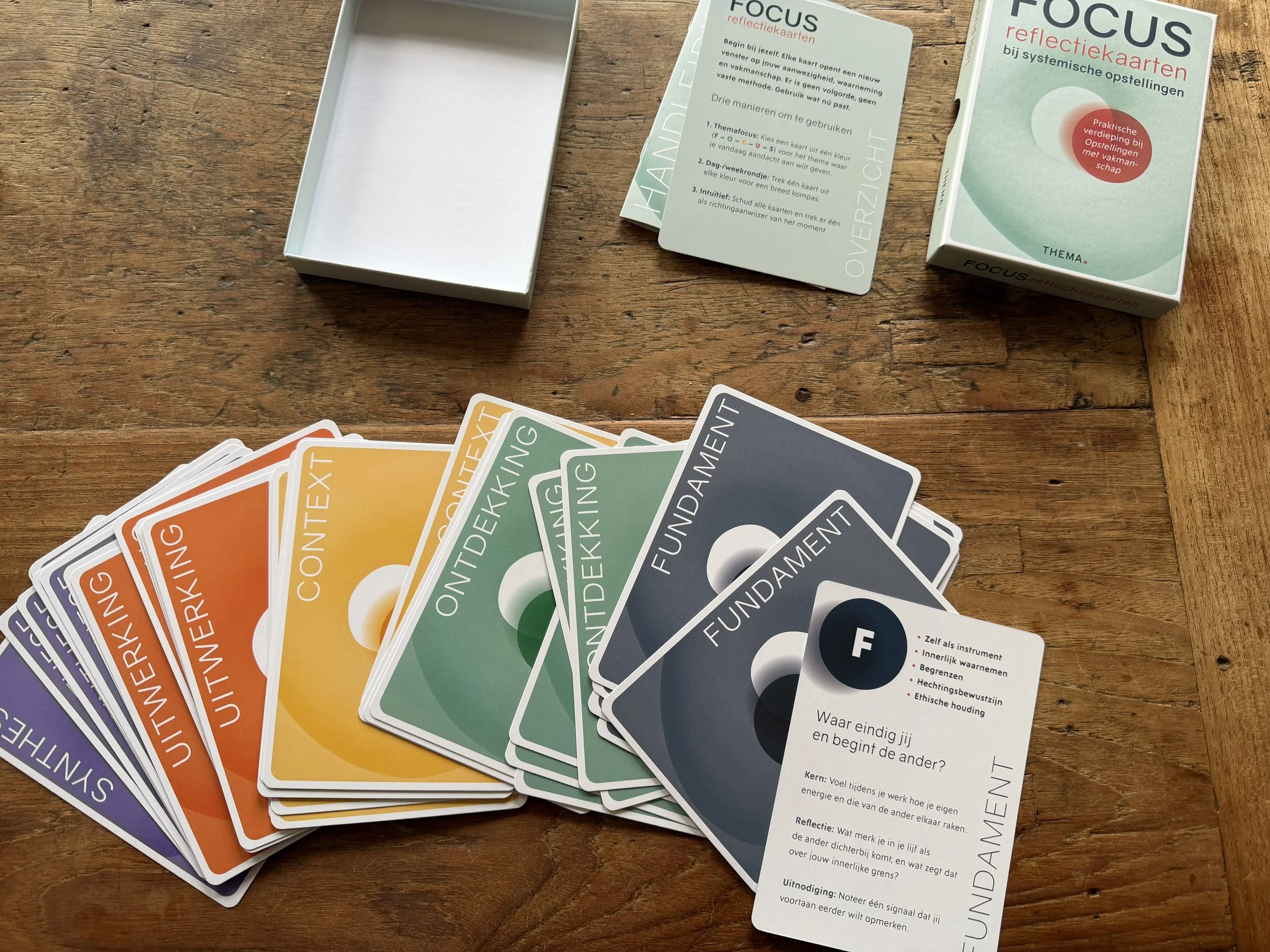 Je kunt de kaarten gebruiken ter voorbereiding op een opstelling, tijdens je werk als begeleider, of als moment van reflectie achteraf.